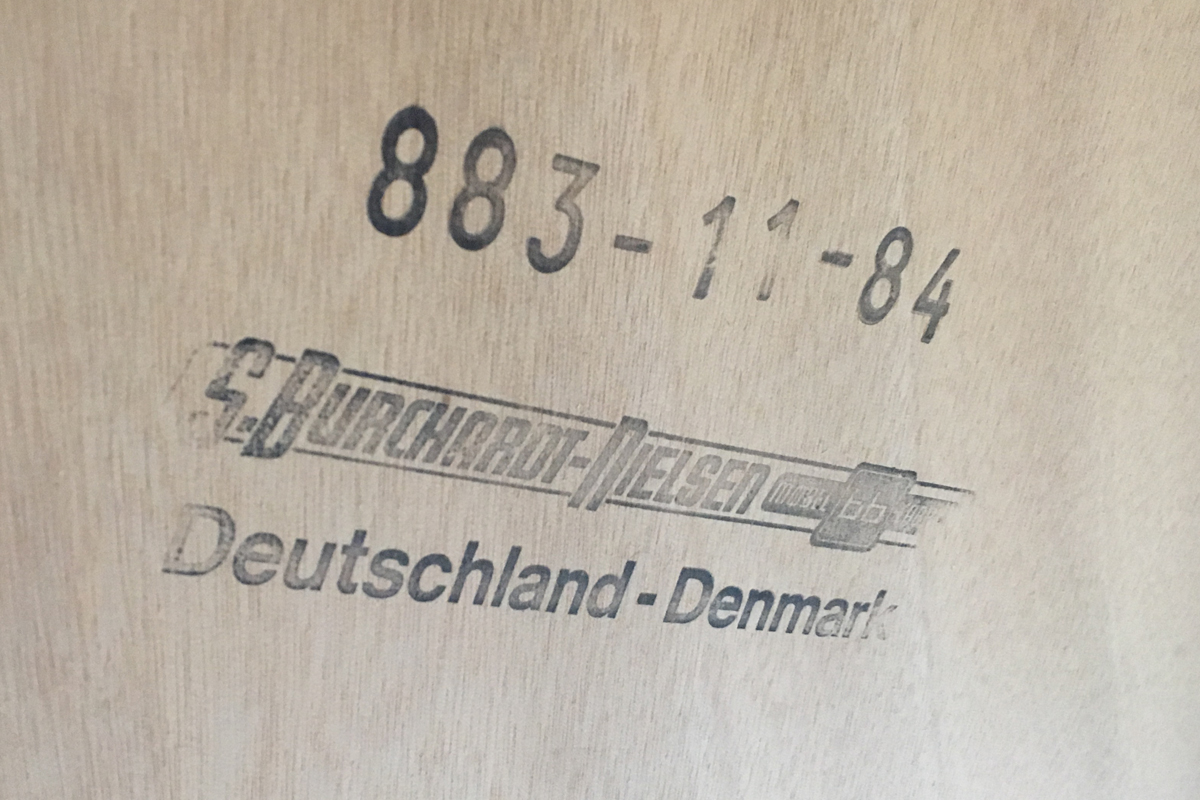 Das Holz wurde gereinigt, angeschliffen und wieder versiegelt. Er ist technisch und optisch in einem sehr guten Zustand.